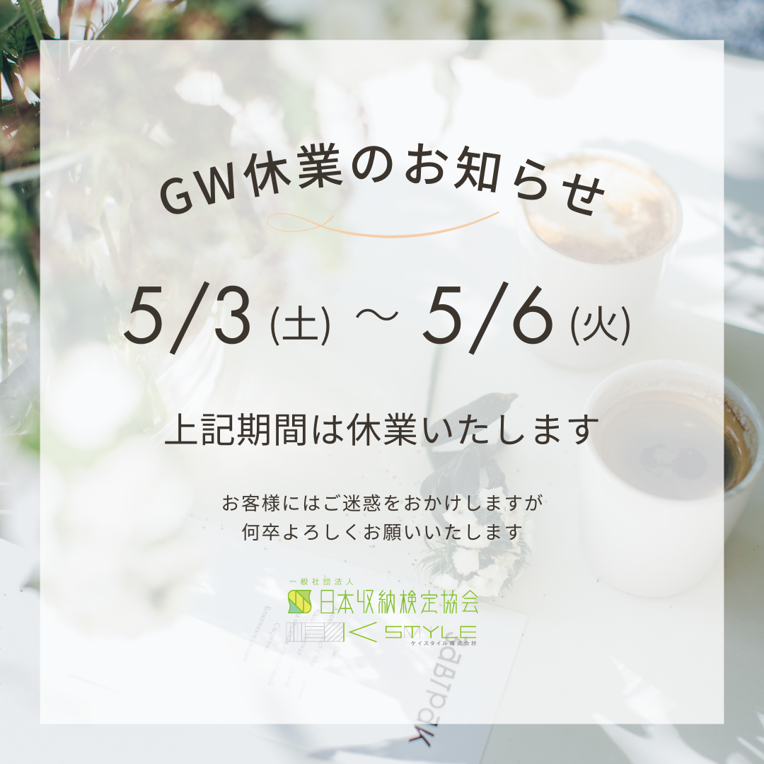 いつも一般社団法人日本収納検定協会をご愛顧いただきありがとうございます。 誠に勝手ながら下記の期間をGW休業とさせていただきます。 皆様にはご不便をお掛けしますが、何卒ご了承いただきますようお願いいたします […]